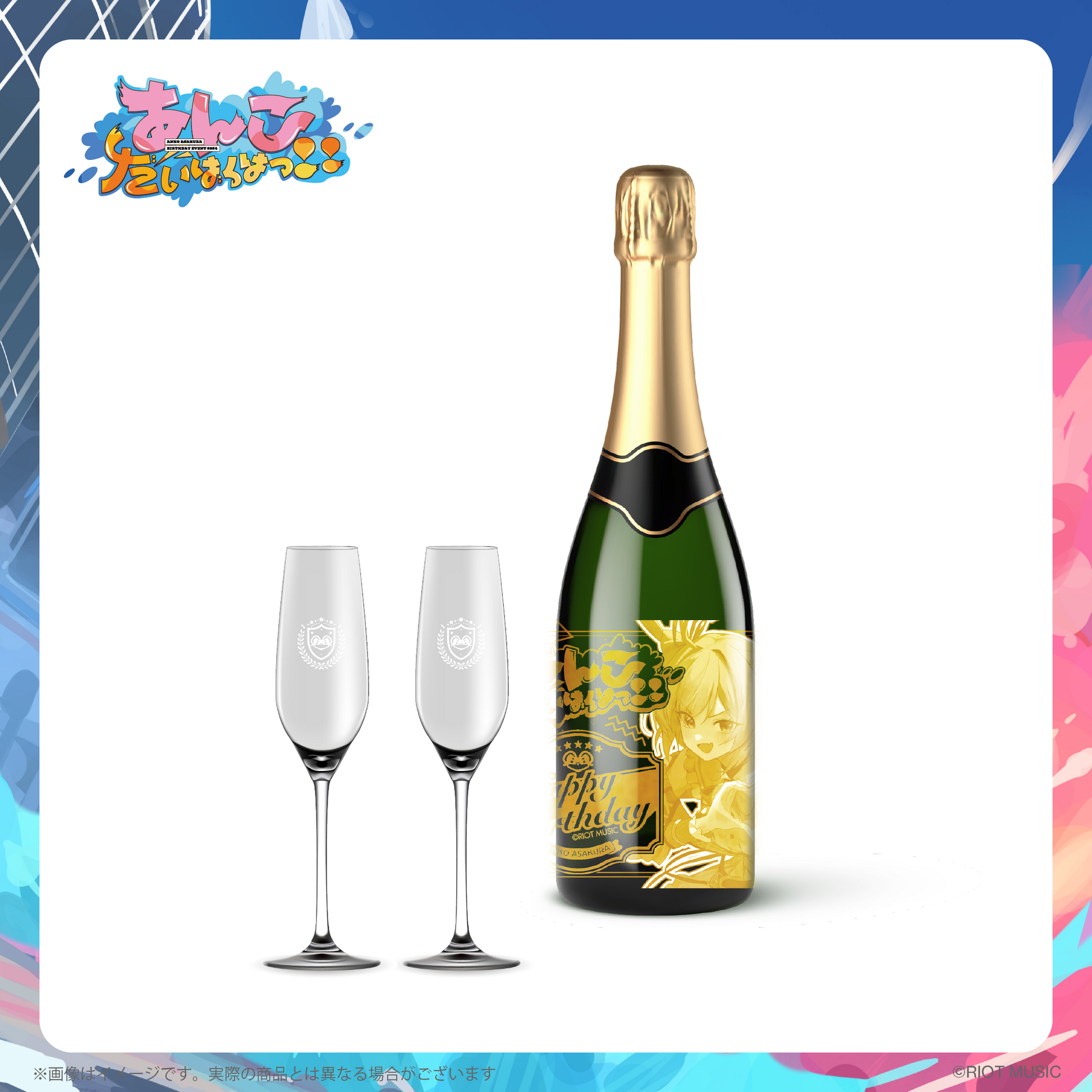 【受注生産】"あんこだいばくはつ!!" オリジナルシャンパンvol.2&ペアグラスセット
